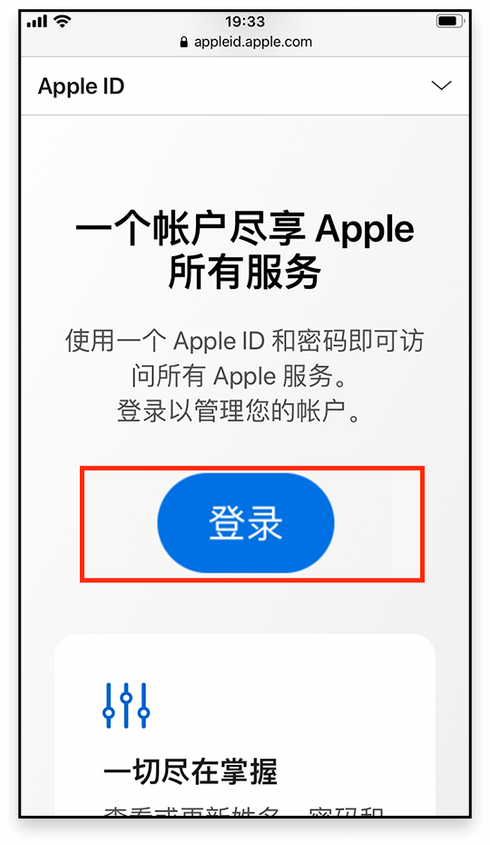 进入 Apple 官网 <https://appleid.apple.com>, 点击 <登录> ,输入自己的 Apple ID;