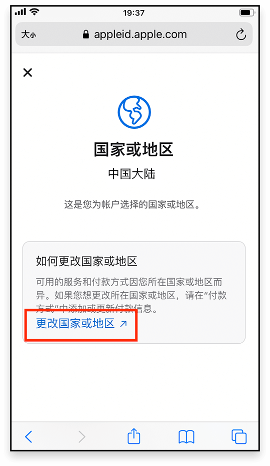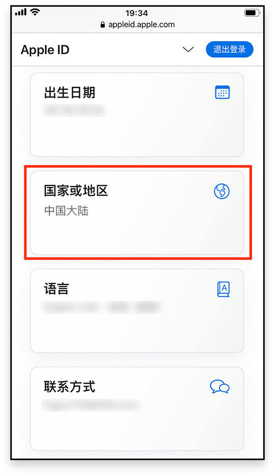 在个人信息页面选择 <国家或地区>;